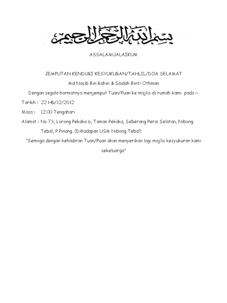 Jemputan Majlis Kesyukuran Dan Doa Selamat Doc