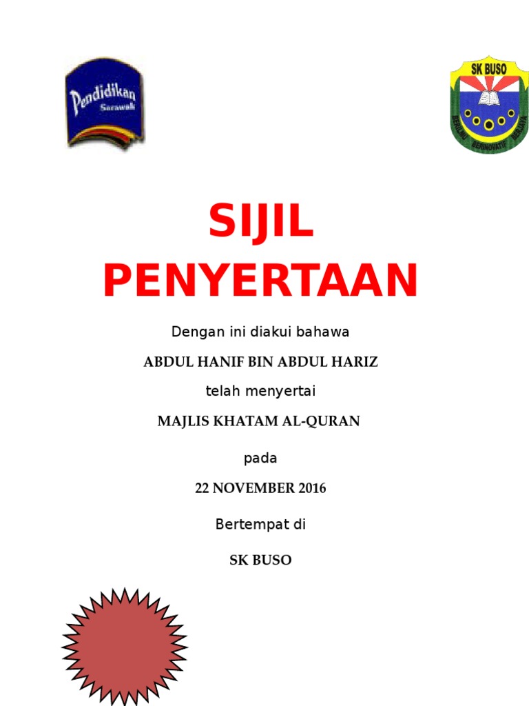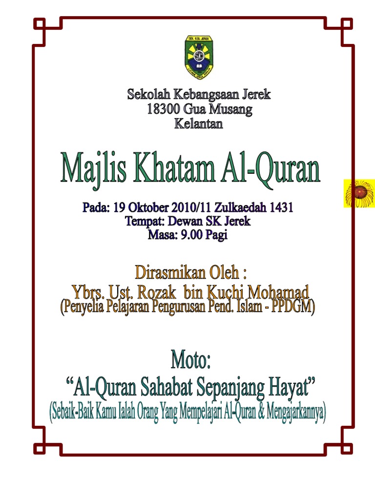 Majlis Khatam Contoh Sijil Khatam Al Quran