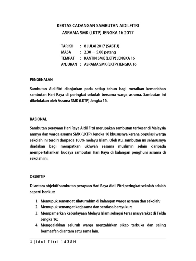 Doc Kertas Kerja Sambutan Aidil Fitri Dan Jamuan Hari Raya 2014 New Suziela Abdul Rahman Academia Edu